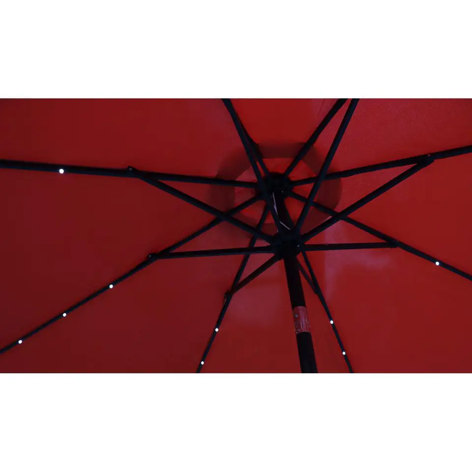 Wbudowane oświetlenie LED sprawia, że parasol może być używany również wieczorem. Daje to możliwość korzystania z ogrodu po zmroku, tworząc przyjemną, romantyczną atmosferę. Diody LED zasilane są panelem słonecznym umieszczonym na górze parasola, należy jednak pamiętać, że lampki będą prawidłowo działać tylko po naładowaniu akumulatorka w słoneczny dzień.