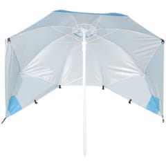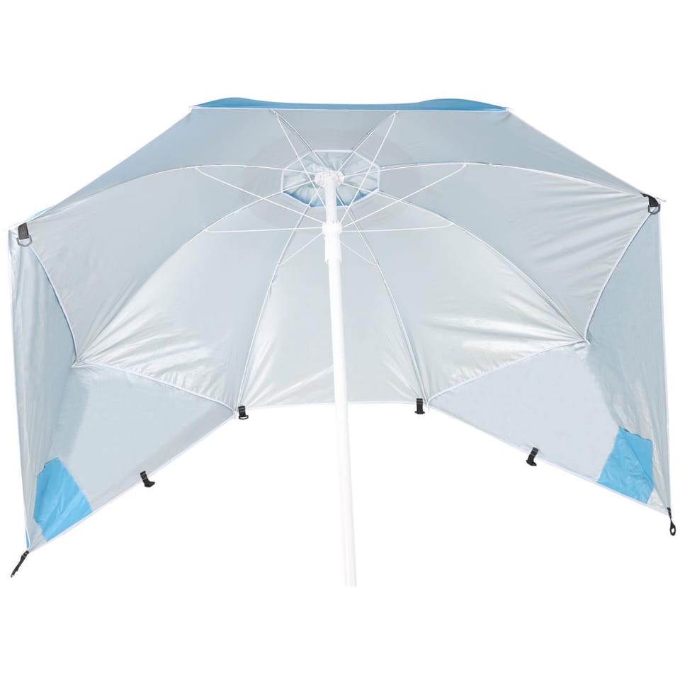 Parasol plażowy o średnicy czaszy 170 cm to praktyczne rozwiązanie, które można używać zarówno jako klasyczny parasol przeciwsłoneczny, lub z opuszczonymi bokami jako parawan o szerokości 190 cm, chroniący skutecznie przed wiatrem. Dzięki lekkiej konstrukcji i łatwemu składaniu idealnie sprawdzi się na plaży, pikniku czy kempingu.