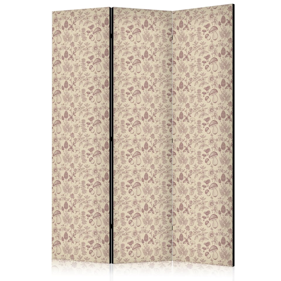Parawan - Beżowa natura lasu - grzyby kwiaty i zioła na jasnym tle rozmiar 135x172, wykończenie Akustyczny