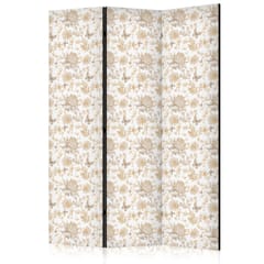 Parawan - Beżowe odcienie natury - kwiaty i motyle na białym tle - ilustracja rozmiar 135x172, wykończenie Akustyczny