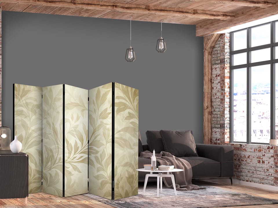 Parawan - Botaniczny motyw z listkami i pnączami w kolorach piaskowych rozmiar 225x172, wykończenie Akustyczny