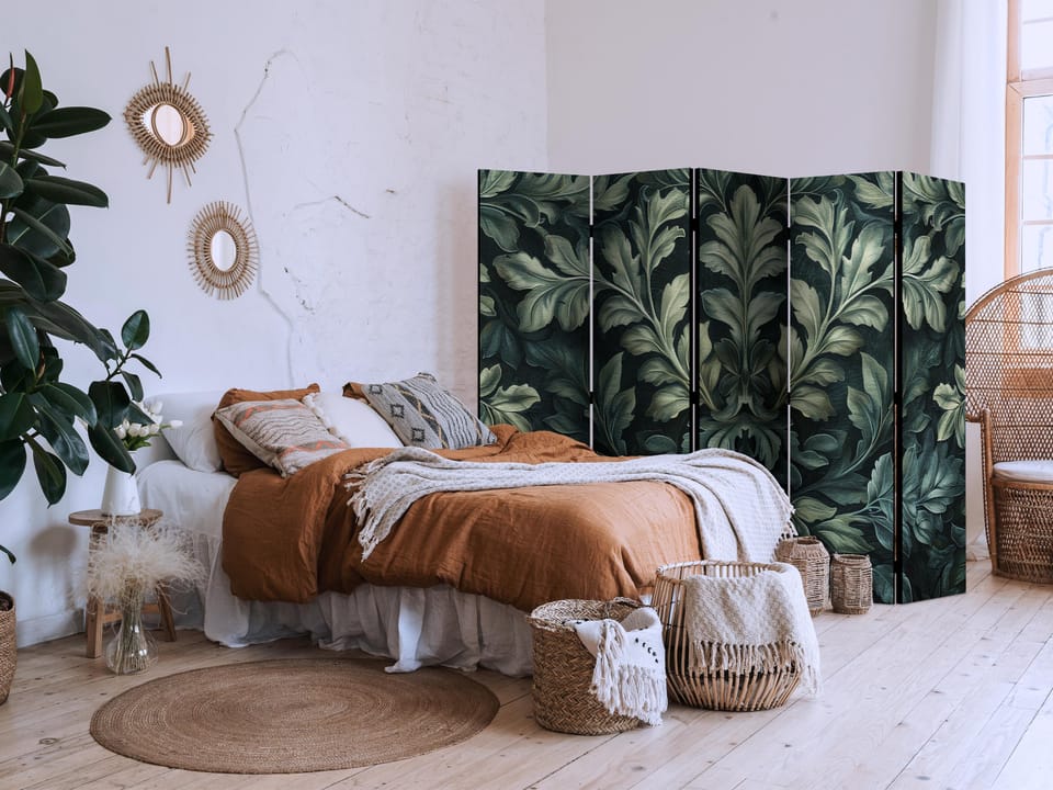 Parawan - Ciemnozielone wiktoriańskie liście - botaniczna rzeźbiona kompozycja rozmiar 225x172, wykończenie Dwustronny