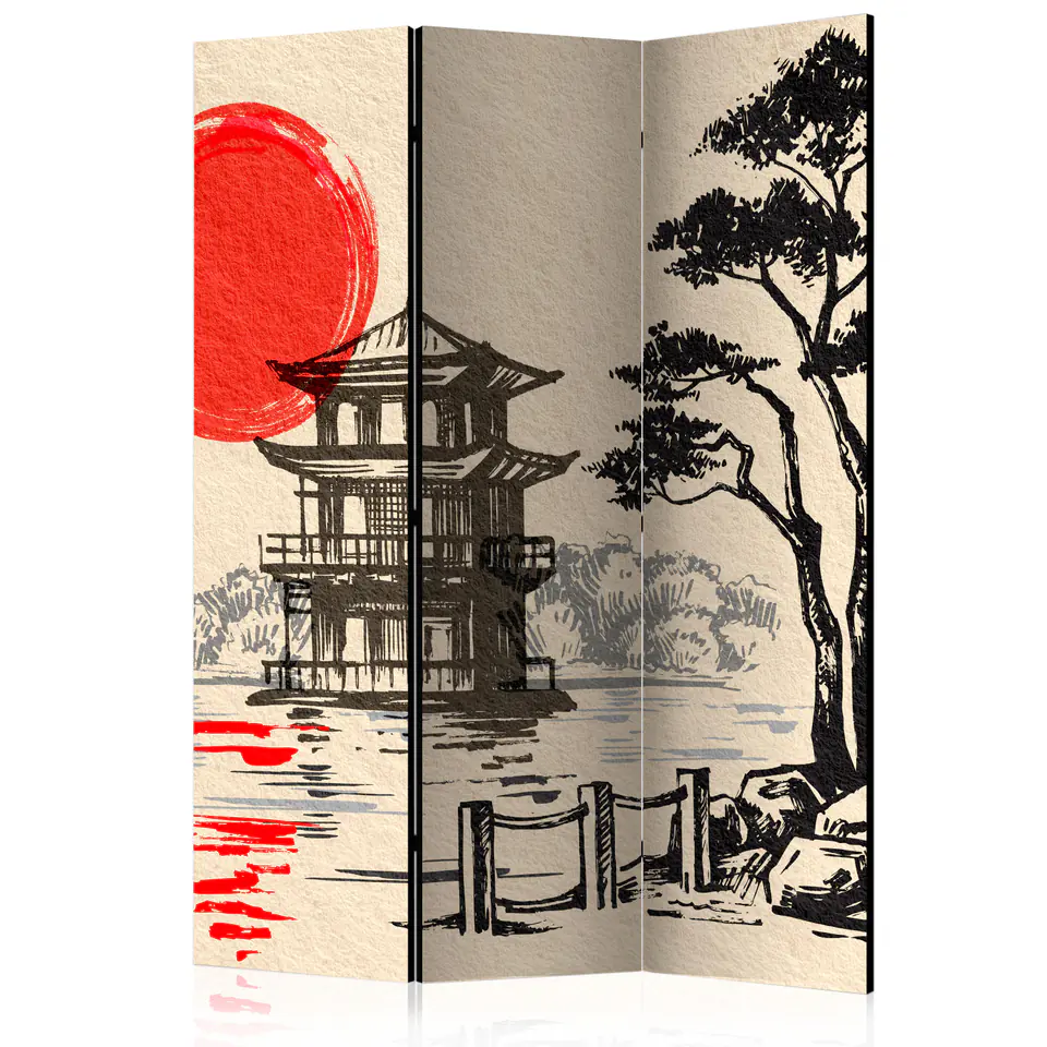 Parawan - Domek nad stawem [Room Dividers] rozmiar 135x172, wykończenie Dwustronny