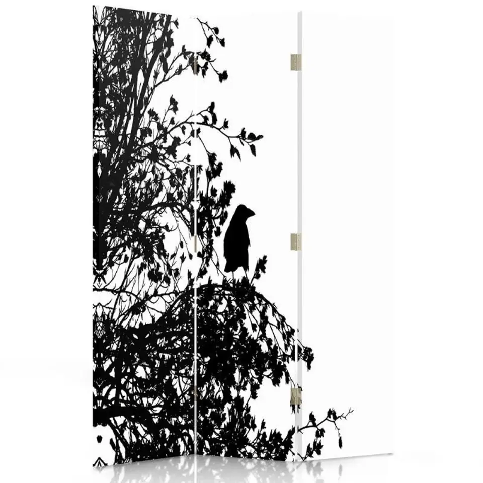 Parawan dwustronny obrotowy, Czarny ptak na gałęzi (Rozmiar 110x170)