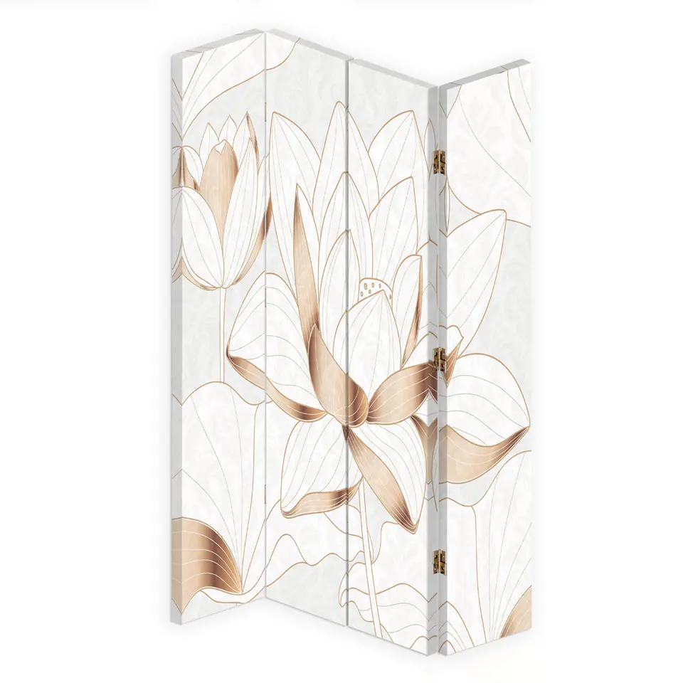 Parawan dwustronny obrotowy, Kwiat lotosu w beżu (Rozmiar 145x170)