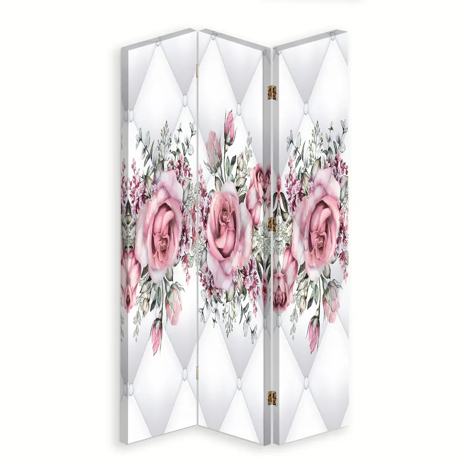 Parawan dwustronny obrotowy, Róże na pikowanej teksturze Rozmiar 110x170
