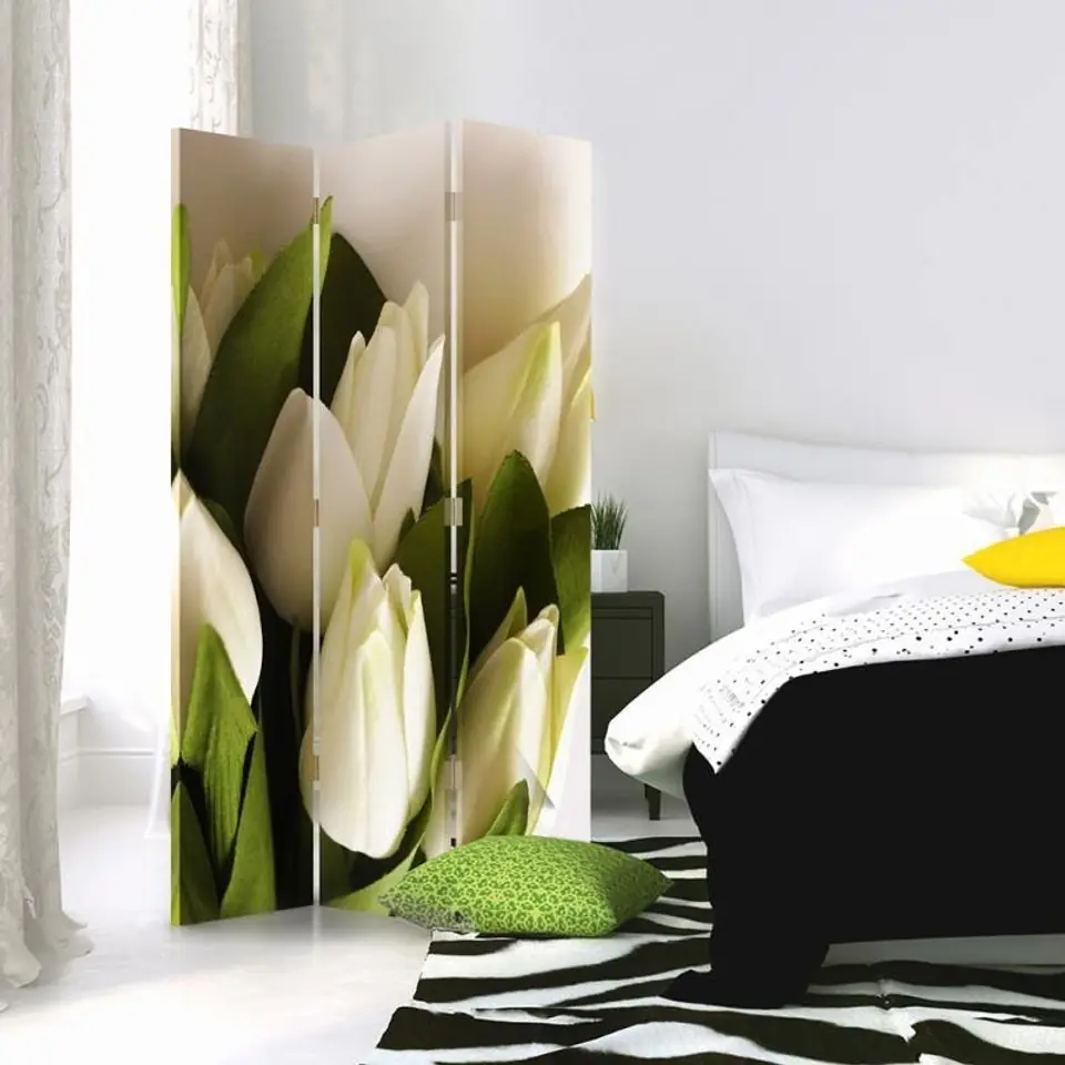 Parawan dwustronny obrotowy, Świeże białe tulipany Rozmiar 110x170