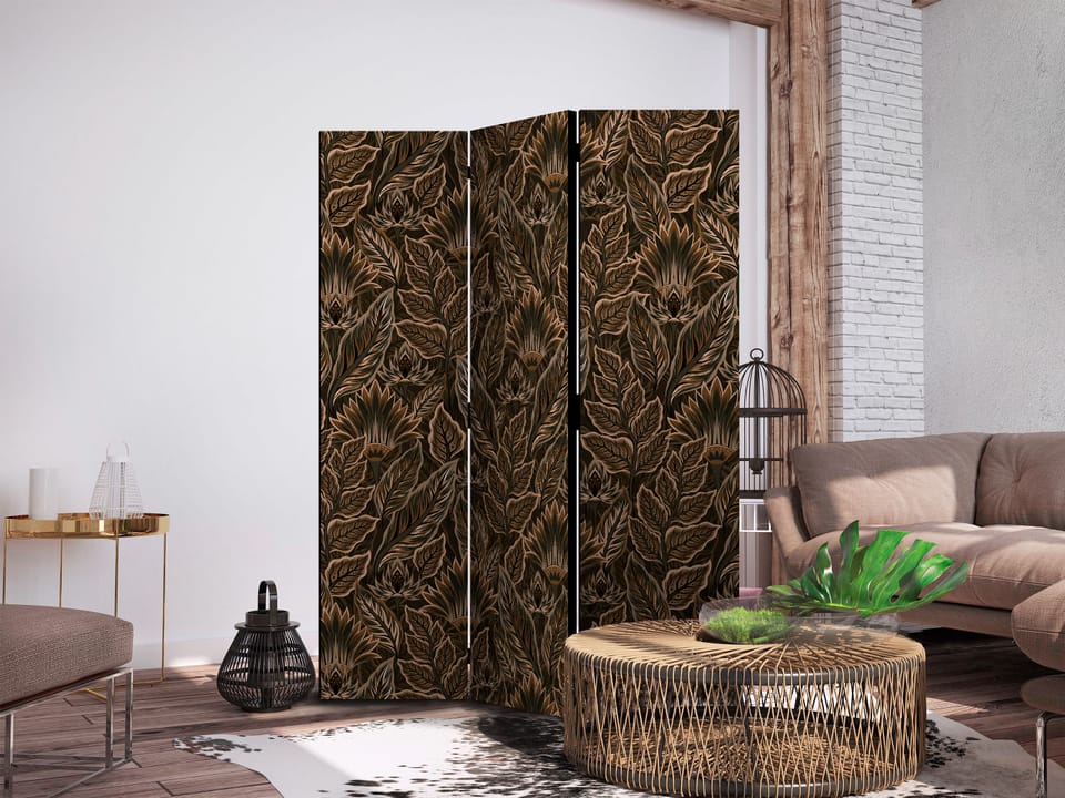 Parawan - Gęsta roślinność - botaniczne wzory w ilustracyjnym stylu; brązowe rozmiar 135x172, wykończenie Jednostronny