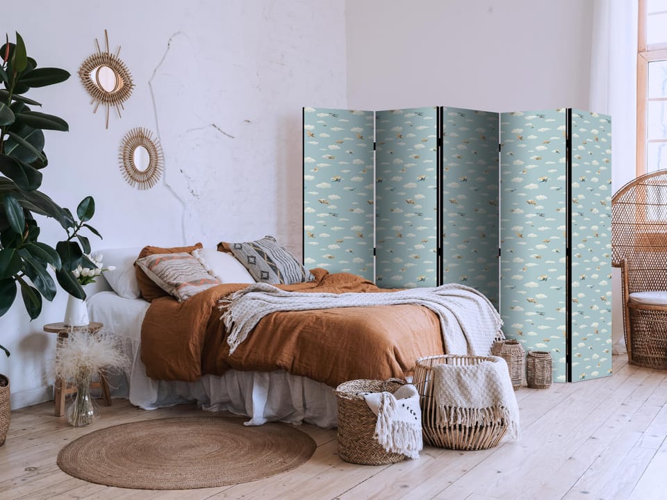 Parawan - Ilustracja - żółto - niebieskie samoloty na tle błękitnego nieba rozmiar 225x172, wykończenie Akustyczny