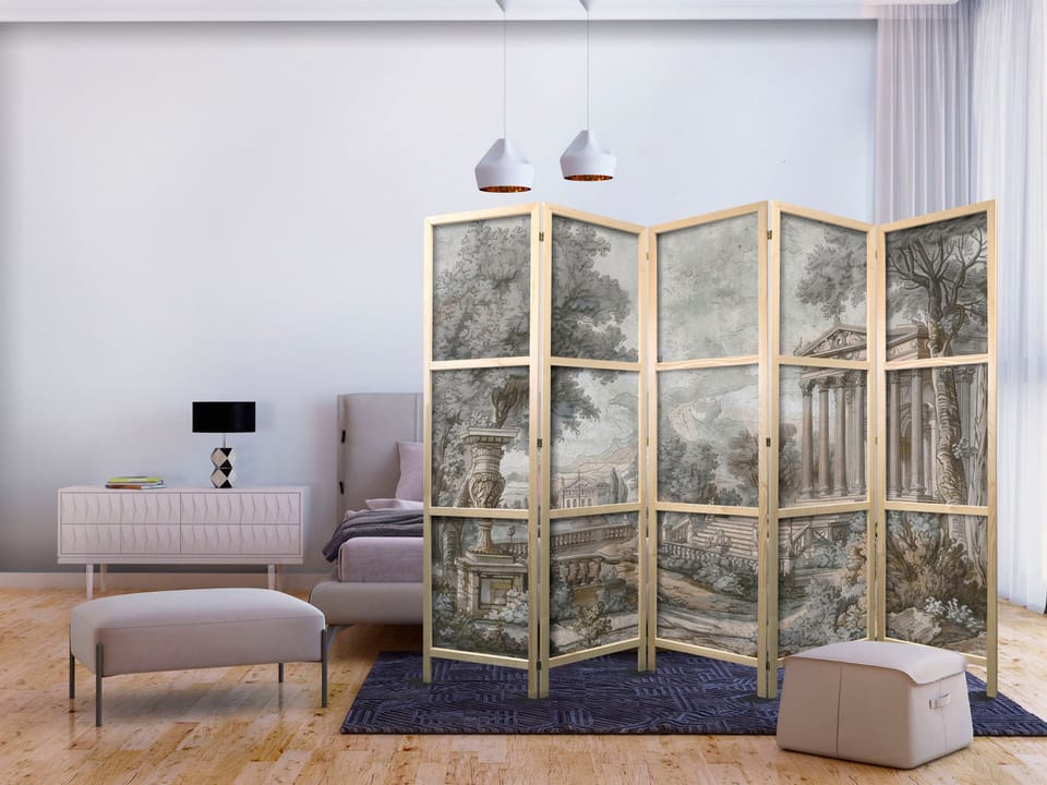 Parawan japoński - Antyczny pejzaż - grecka świątynia na wzgórzu wśród bujnej roślinności rozmiar 225x172, wykończenie