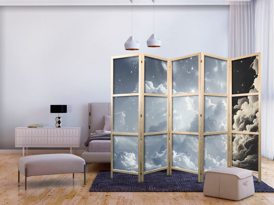 Parawan japoński - Astralny spokój: Gwiazdy rozsypane nad delikatnymi chmurami rozmiar 225x172, wykończenie