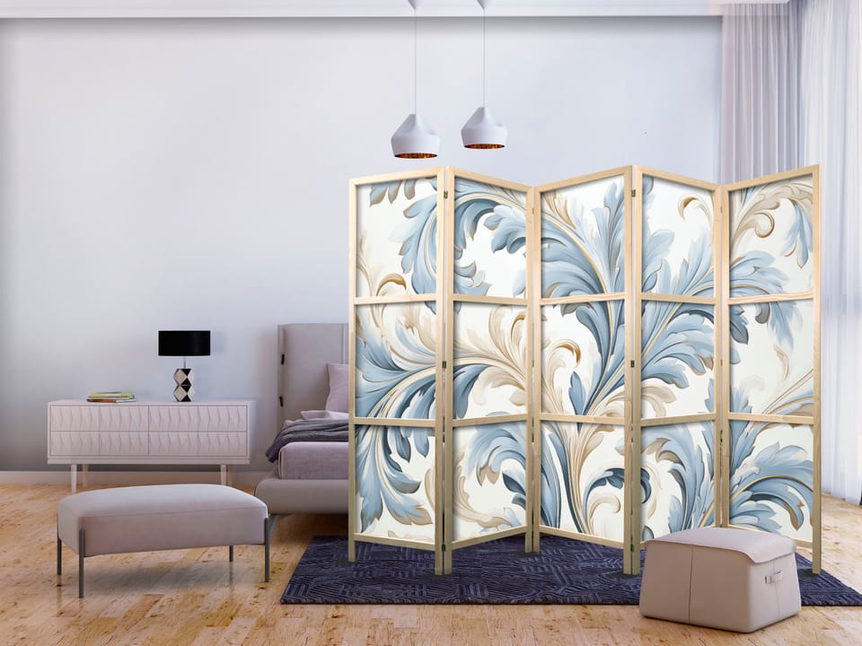 Parawan japoński - Barokowe ornamenty w jasnej - kremowo-niebieskiej kolorystyce rozmiar 225x172, wykończenie