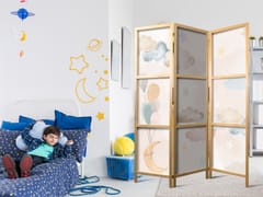 Parawan japoński - Baśniowy księżyc - Księżyc z balonikami wśród chmur i gwiazdek w stonowanych kolorach na jasnym - beżowym tle rozmiar 135x172, wykończenie