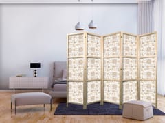 Parawan japoński - Beżowe odcienie natury - kwiaty i motyle na białym tle - ilustracja rozmiar 225x172, wykończenie