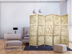 Parawan japoński - Botaniczny motyw z listkami i pnączami w kolorach piaskowych rozmiar 225x172, wykończenie