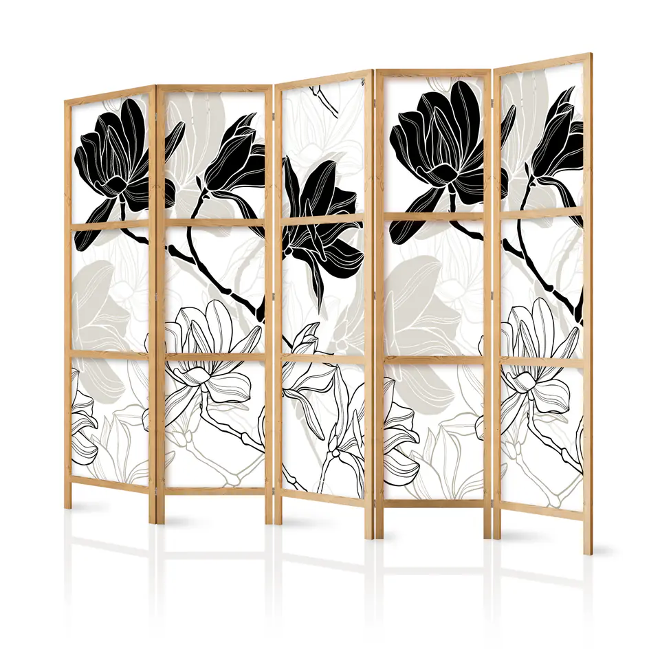 Parawan japoński - Czarno-białe kwiaty II rozmiar 225x172, wykończenie