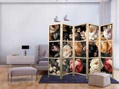 Parawan japoński - Florystyka w stylu vintage - ogrom kolorowych kwiatów na czarnym tle rozmiar 225x172, wykończenie