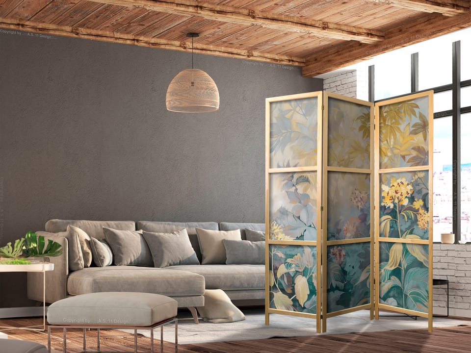 Parawan japoński - Gobelinowy wzór z łąką i kwiatami - kilim z wiosennym motywem rozmiar 135x172, wykończenie