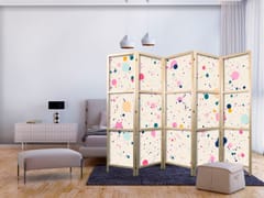 Parawan japoński - Kropki - plamki i kleksy wielokolorowe - wesoły wzór na jasnoróżowym tle rozmiar 225x172, wykończenie