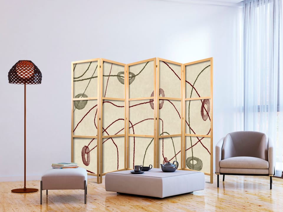 Parawan japoński - Labirynt z koralików - minimalistyczna abstrakcja na przecieranym tle rozmiar 225x172, wykończenie