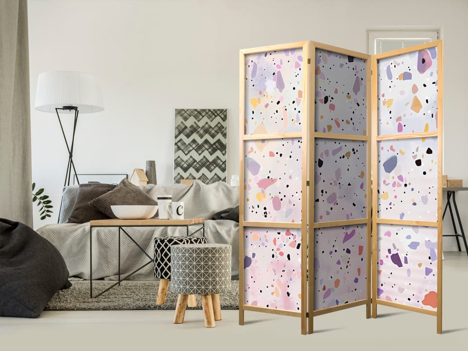 Parawan japoński - Lastriko w stylu confetti - fioletowo-różowy - kolorowy wzór rozmiar 135x172, wykończenie