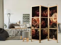 Parawan japoński - Okazałe tulipany - bukiet kwiatów w czerwieni i bieli na czarnym tle rozmiar 135x172, wykończenie