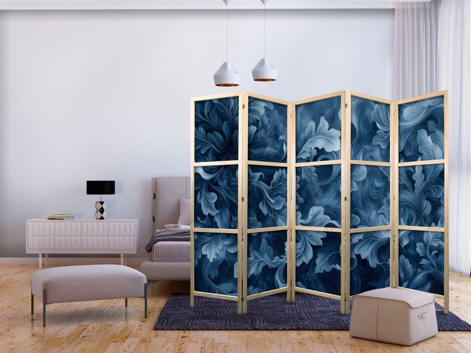 Parawan japoński - Ornamenty abstrakcyjne - ciemnoniebieskie wiktoriańskie liście rozmiar 225x172, wykończenie