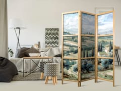 Parawan japoński - Pejzaż z zielonymi polami i drzewami - toskański słoneczny widok rozmiar 135x172, wykończenie