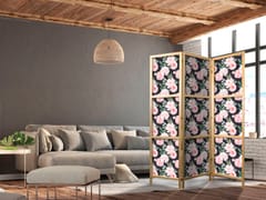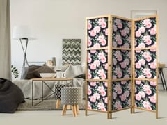 Parawan japoński - Piwonie - różowe kwiaty i zielone listki na grafitowym tle rozmiar 135x172, wykończenie