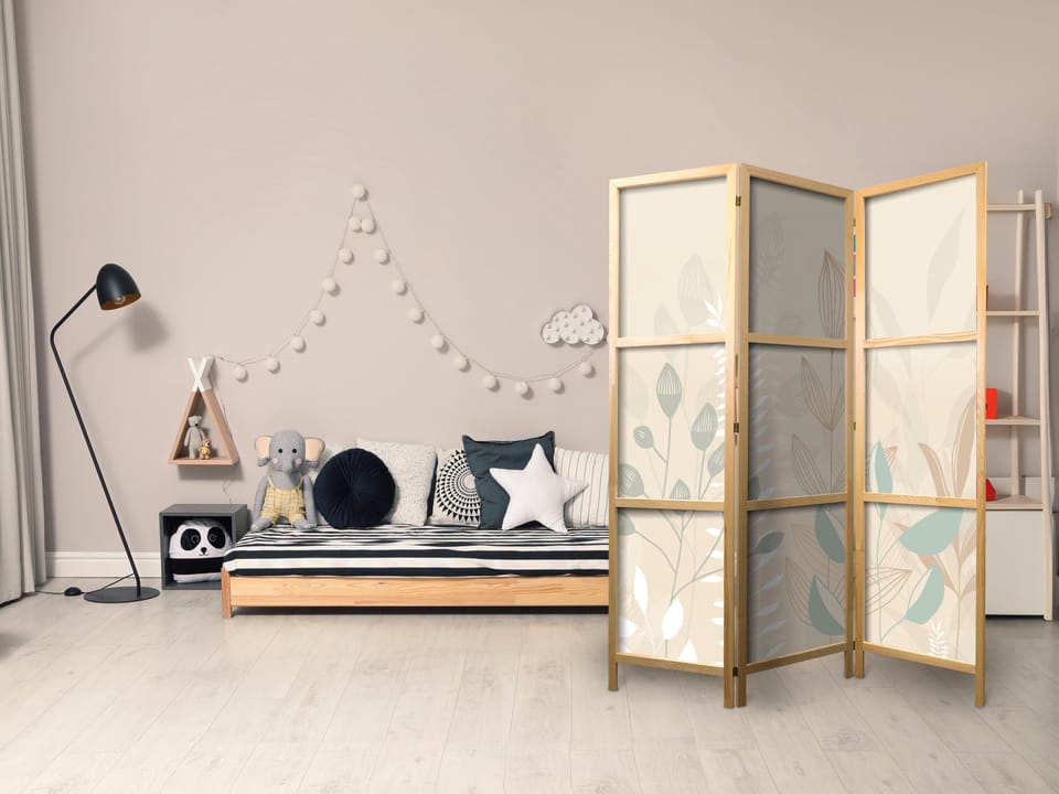 Parawan japoński - Poranek na polanie - różnorodne pastelowe rośliny na beżowym tle rozmiar 135x172, wykończenie