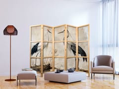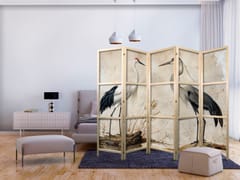 Parawan japoński - Ptaki ze starej ryciny - ilustracja w stylu vintage, przedstawiająca czaplę i żurawia rozmiar 225x172, wykończenie