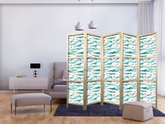 Parawan japoński - Ryby wyskakujące ponad fale - Orientalne ryby i lilie wodne wśród wysokich fal w barwach morskiej zieleni rozmiar 225x172, wykończenie