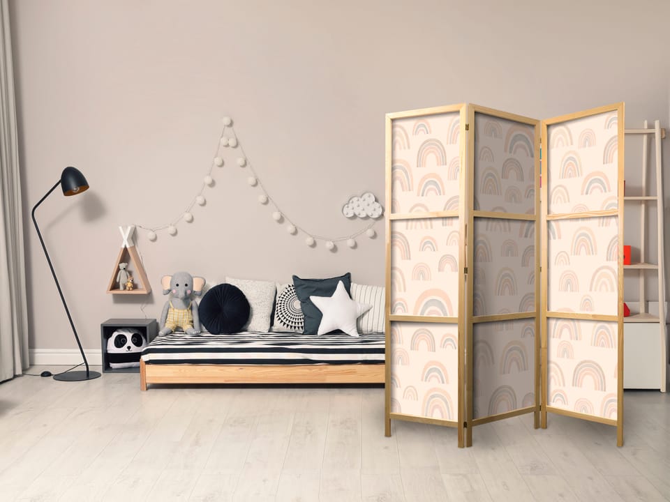Parawan japoński - Sierpniowe niebo - różnej wielkości tęcze w stonowanych kolorach rozmiar 135x172, wykończenie