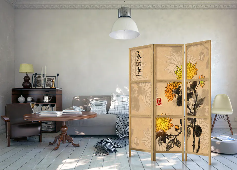 Parawan japoński - Styl japoński: Chryzantemy rozmiar 135x172, wykończenie