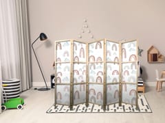Parawan japoński - Tęcze i chmury - Tęcze rozmaitych wielkości w stonowanej kolorystyce pośród deszczowych chmur w odcieniu blado-niebieskim rozmiar 225x172, wykończenie