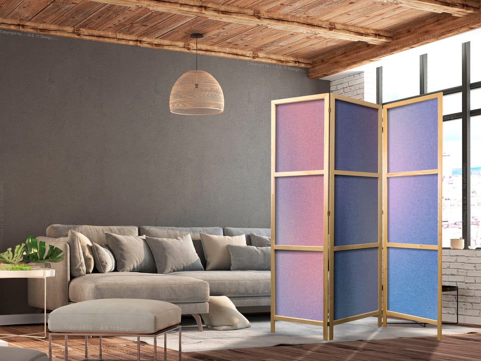 Parawan japoński - Tęczowy gradient - delikatny wielokolorowy gradient przypominający mgłę rozmiar 135x172, wykończenie