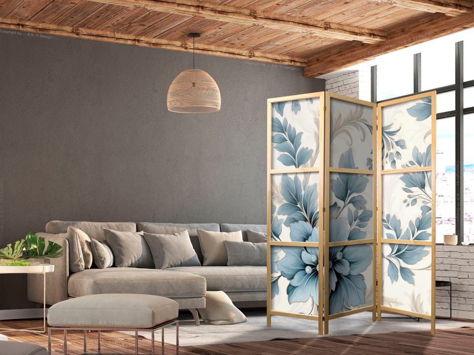 Parawan japoński - Turkusowe kwiaty w retro klimacie - florystyczne ornamenty rozmiar 135x172, wykończenie
