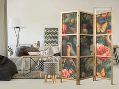 Parawan japoński - W ogrodzie botanicznym - kwiaty ptaki i motyle - barwna ilustracja rozmiar 135x172, wykończenie