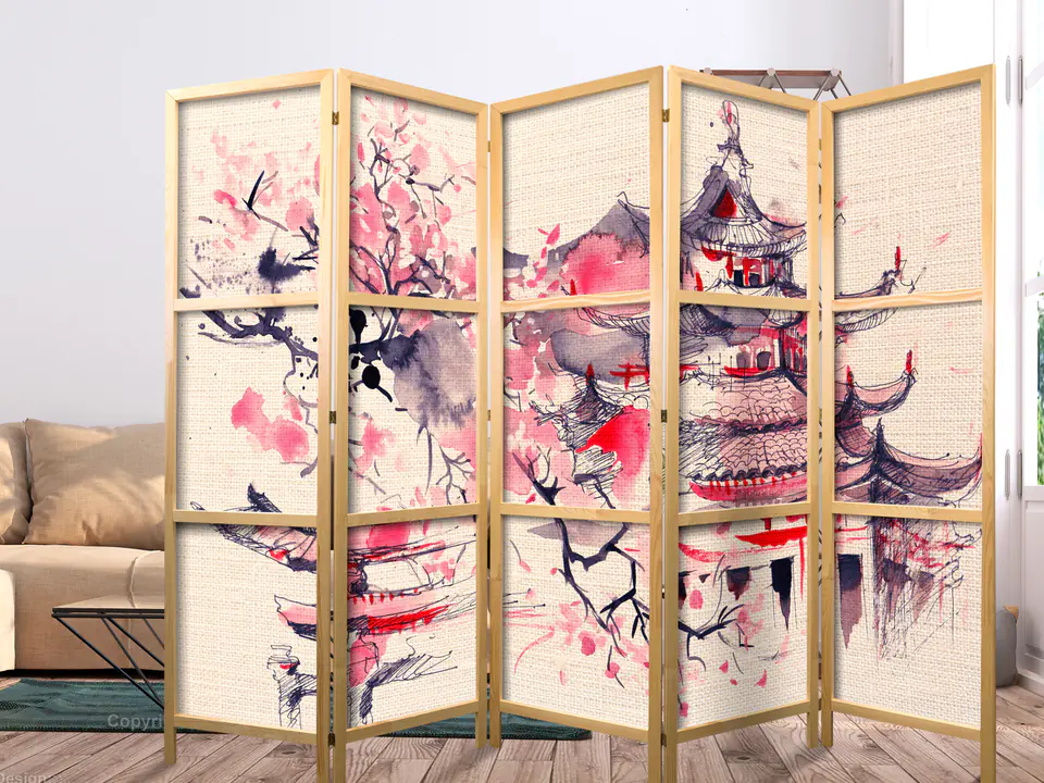 Parawan japoński - W świątyni rozmiar 225x172, wykończenie