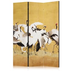 Parawan - Japońskie żurawie - stado ptaków na tle w odcieniu złota na podstawie obrazu Ishida Yūtei rozmiar 135x172, wykończenie Akustyczny
