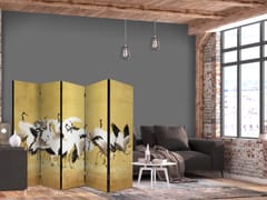 Parawan - Japońskie żurawie - stado ptaków na tle w odcieniu złota na podstawie obrazu Ishida Yūtei rozmiar 225x172, wykończenie Dwustronny