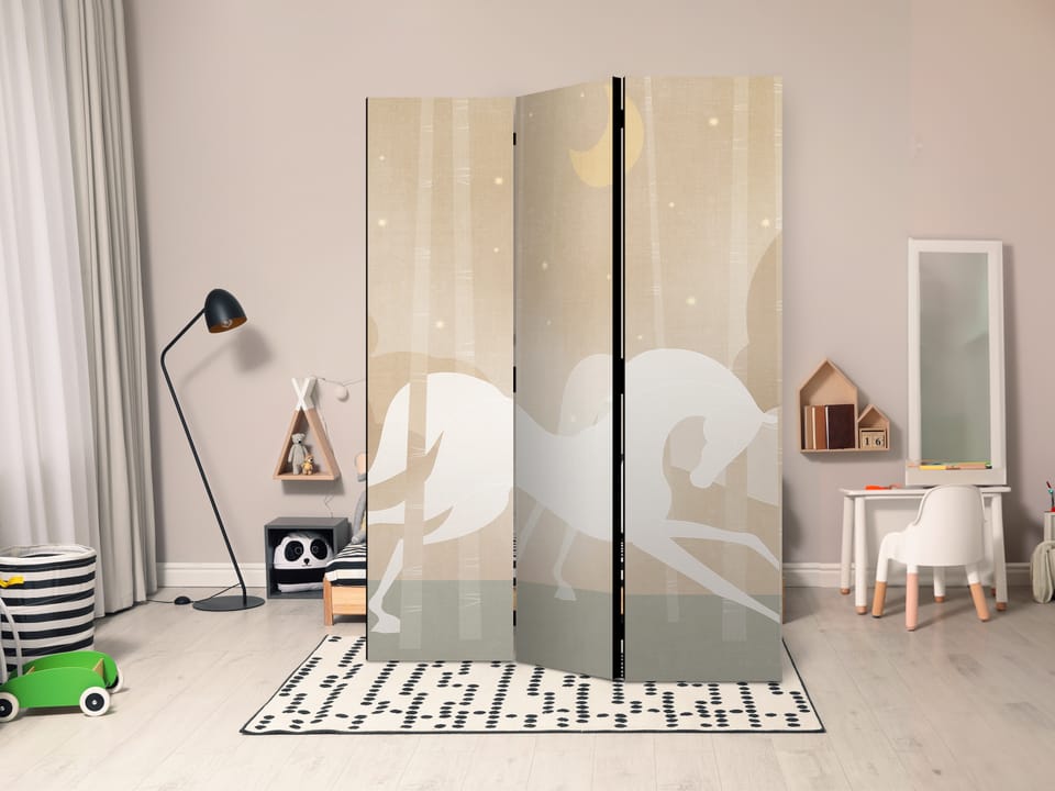 Parawan - Księżycowe rumaki - konie galopujące wśród drzew w gwieździstą noc rozmiar 135x172, wykończenie Dwustronny