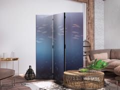 Parawan - Ławica małych rybek - Rozświetlona oceaniczna toń w barwach granatu fioletu i szarości z ławicą drobnych rybek rozmiar 135x172, wykończenie Dwustronny