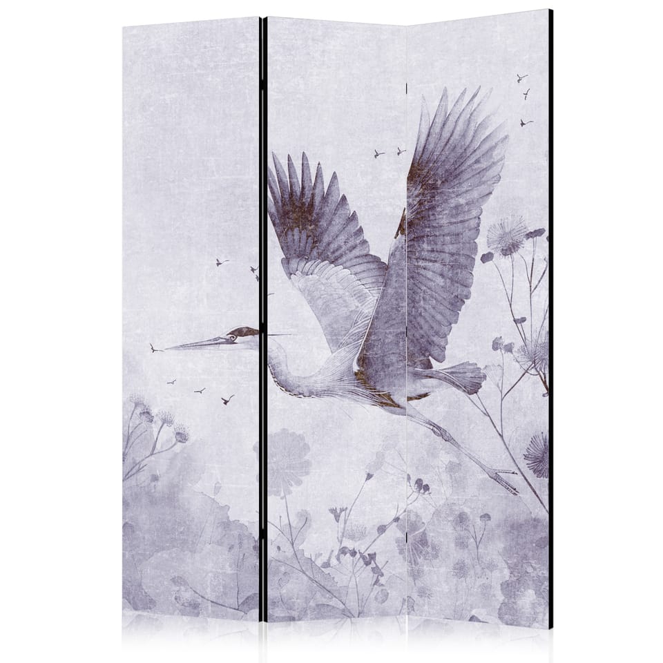 Parawan - Majestatyczny lot - żuraw w locie w monochromatycznej, chłodnej kolorystyce rozmiar 135x172, wykończenie Akustyczny