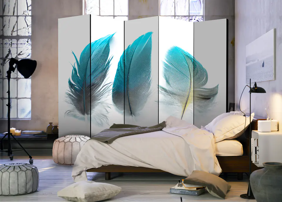 Parawan - Niebieskie piórka II [Room Dividers] rozmiar 225x172, wykończenie Akustyczny
