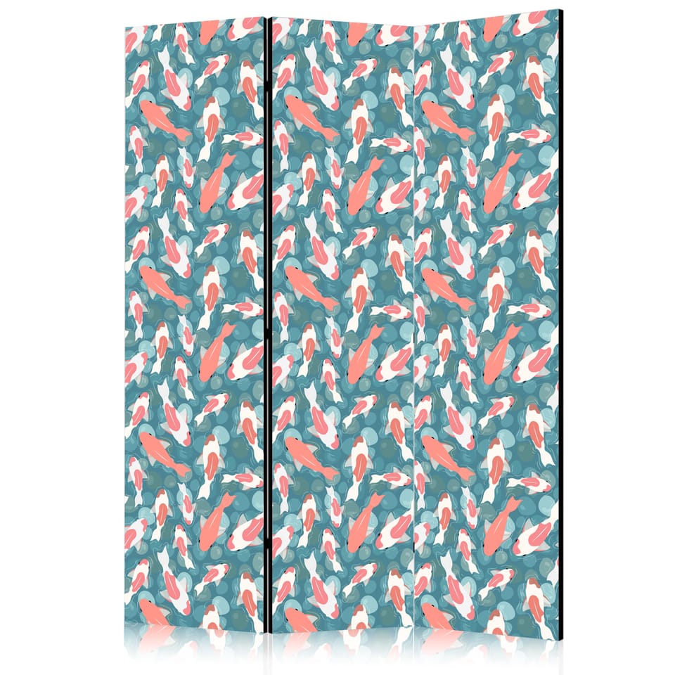 Parawan - Orientalny staw - Gromada japońskich rybek pływająca w krystalicznej wodzie z rozbłyskami światła rozmiar 135x172, wykończenie Akustyczny