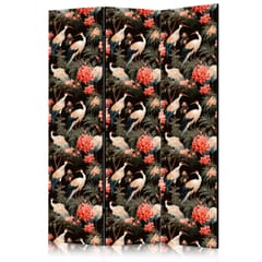 Parawan - Ornament z ptakami - sylwetki żurawi i kwiaty piwonii na ciemnym tle rozmiar 135x172, wykończenie Akustyczny