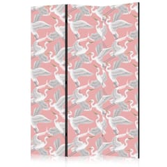 Parawan - Pastelowe ptaki - delikatny wzór w biało-szare czaple na jasno-różowym tle rozmiar 135x172, wykończenie Akustyczny