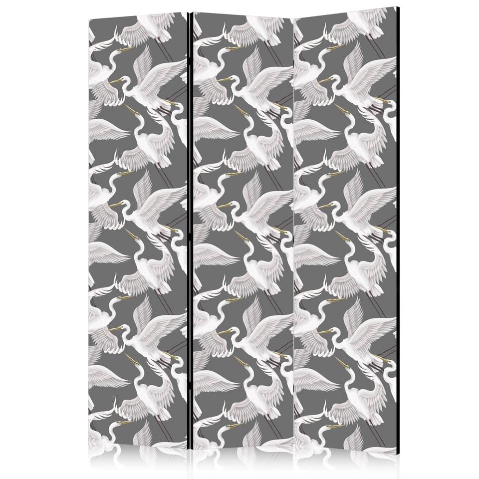 Parawan - Pastelowe ptaki - delikatny wzór w biało-szare czaple na jasno-różowym tle rozmiar 135x172, wykończenie Akustyczny