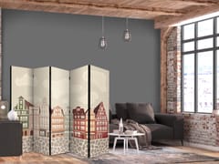 Parawan - Plac Solny - kolorowe ilustrowane kamieniczki na tle nieba z chmurami rozmiar 225x172, wykończenie Dwustronny